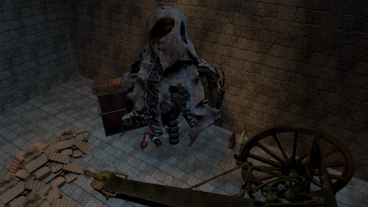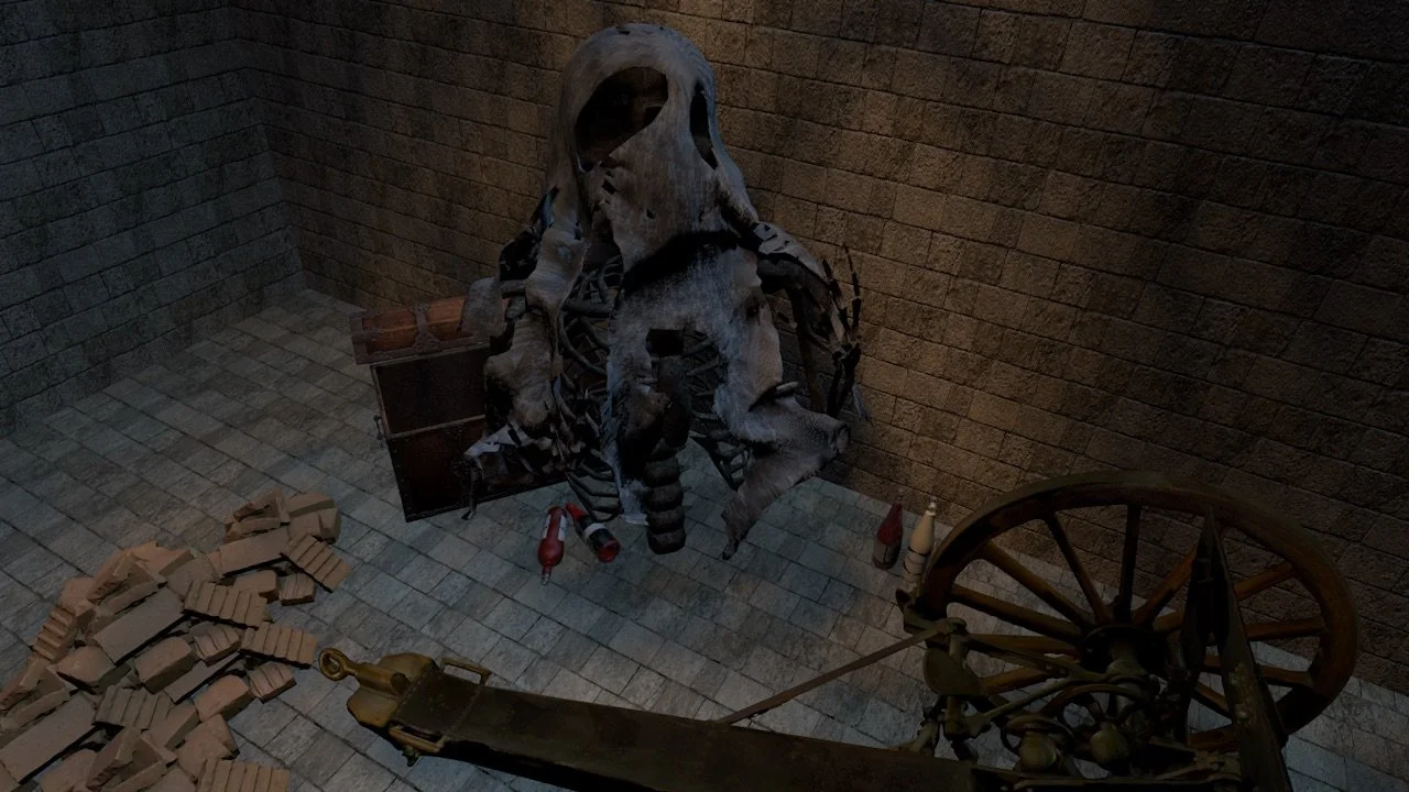 A 3D model based visualizing the aftermath of Fortunato from Edgar Allen Poe’s short story The Cask of Amontillado.