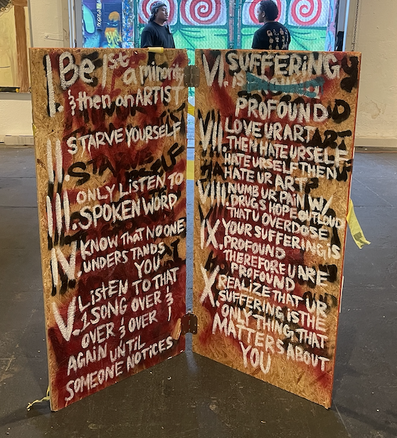 This piece is a manifesto for POC and queer artists who often, in the art world, are reduced to their identity as a means to commodify and co-opt their trauma and lived experience into marketable art.