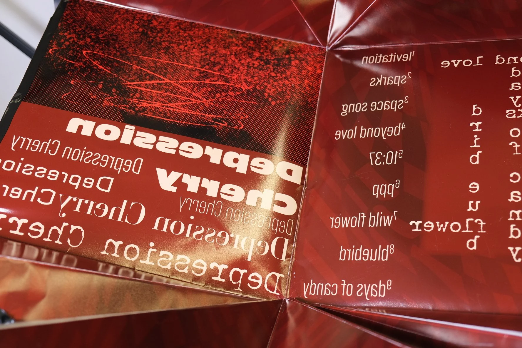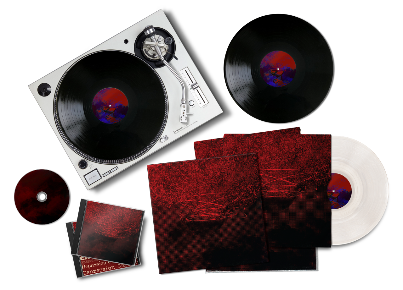 Depression Cherry Vinyl Record and Sleeve12×12in Redesign of Beach House’s Depression Cherry album cover and product packaging. Includes vinyl sleeve, record, CD, and CD case